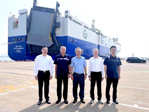 After the meeting, Chen Shu and his entourage visited Tianjin Port Ro-Ro Terminal to learn more about the import and export logistics of automobiles in Tianjin Port.