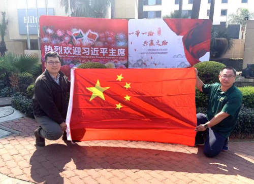 Employees Zhongshan and Fei Zhenhua from JSFT stationed in South Africa were thrilled to hear that President Xi Jinping is about to visit. They voluntarily joined the welcoming team along the way, eagerly anticipating President Xi Jinping's arrival with great excitement.